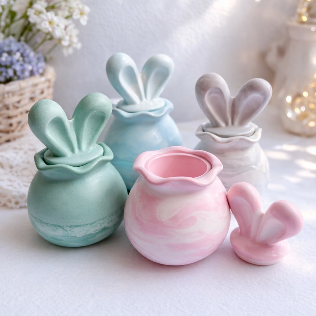 【人気商品】うさ耳 小物入れ マーブル模様 キャンドル変更可