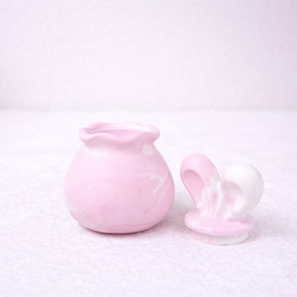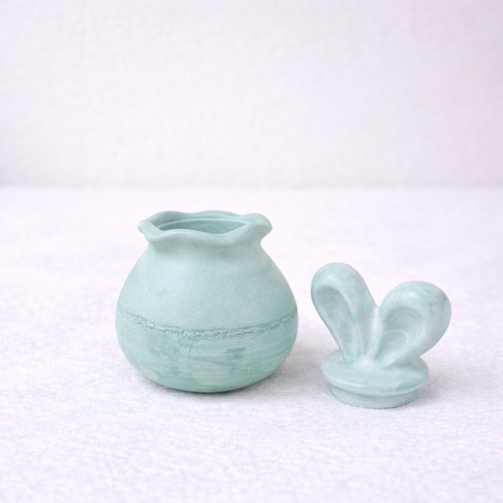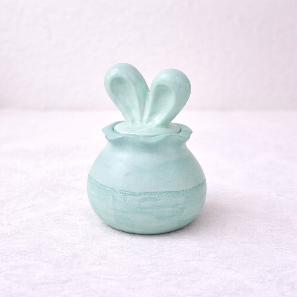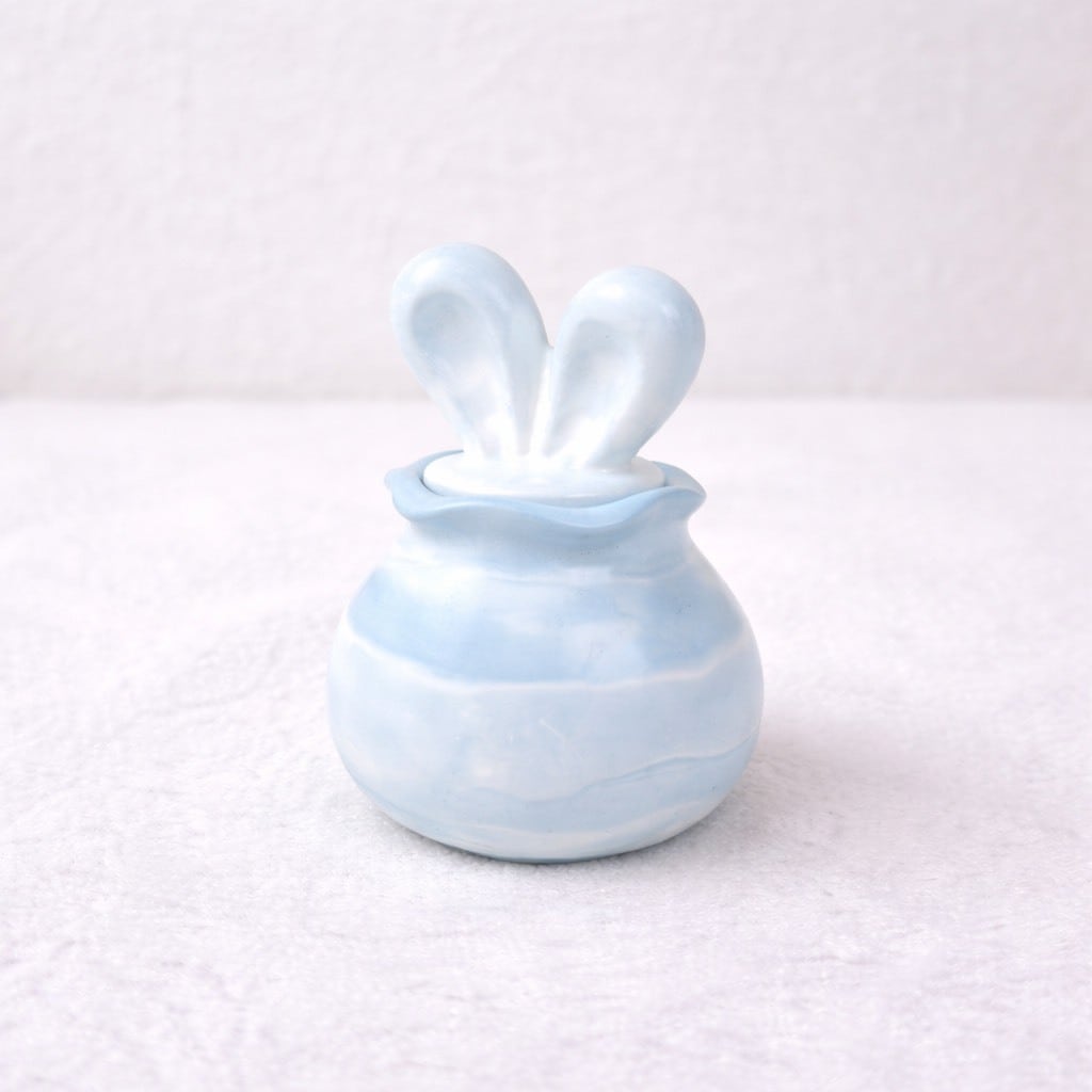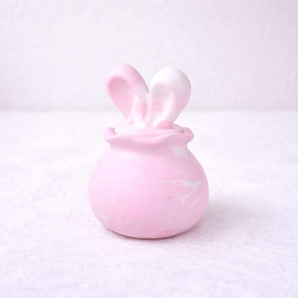 うさ耳のかわいらしいフォルムと、やさしいマーブル模様が魅力の小物入れです。