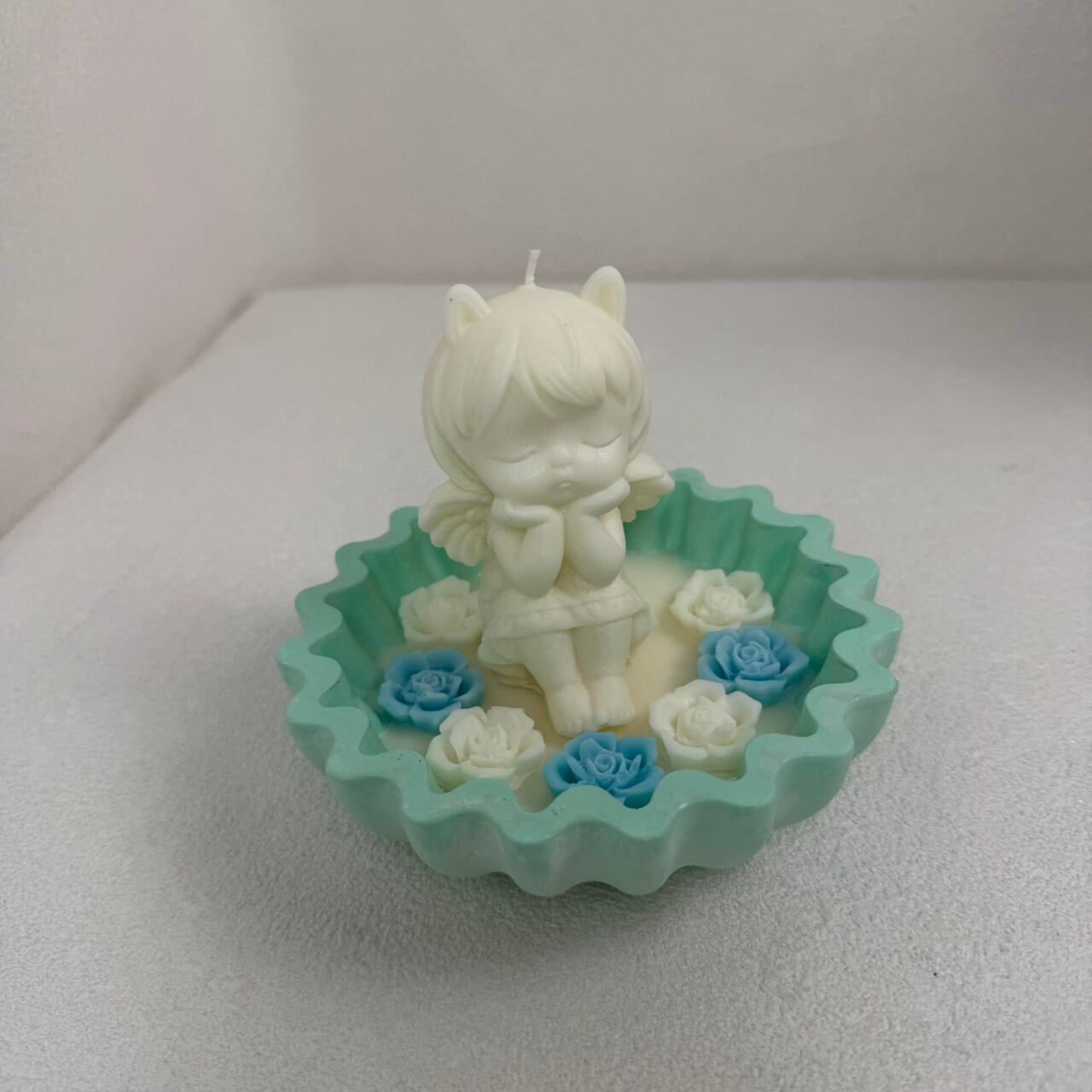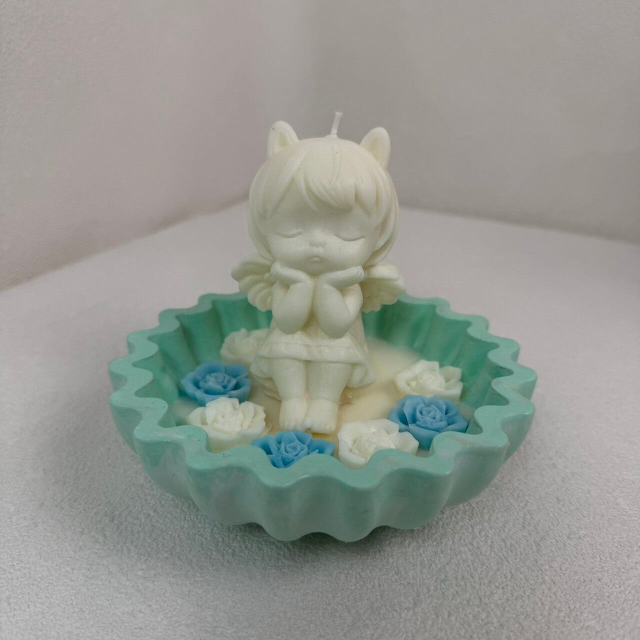 優しい表情の天使と花のデザインが、お部屋にやわらかな雰囲気を添えてくれます。灯すことで温かい光を楽しむことができますが、インテリアとしてのご使用がおすすめです。