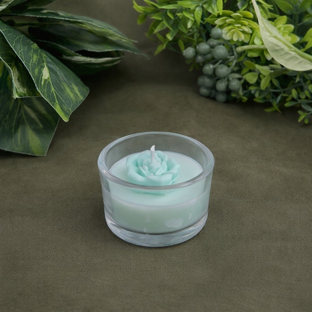 やわらかな若葉色で仕上げた、ティーカップモチーフのキャンドルです。